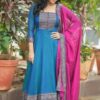 Elevate your ethnic wardrobe with a graceful Anarkali crafted from pure cotton hand-block printed Kalamkari fabric. This full-length silhouette blends traditional artistry with modern elegance. Paired with a luxurious kalamkari lace border georgette dupatta, it’s perfect for festive occasions, , or cultural celebrations.