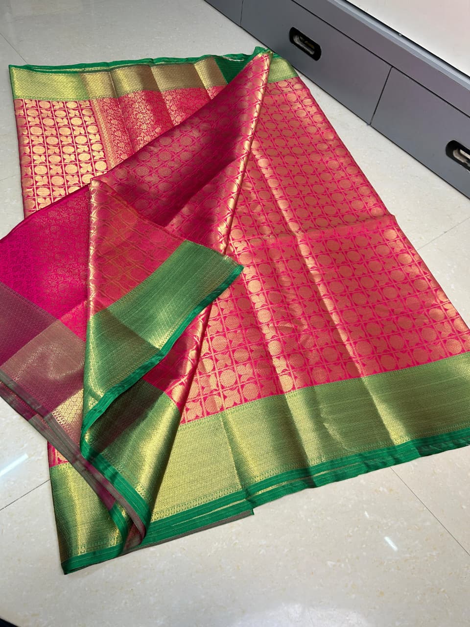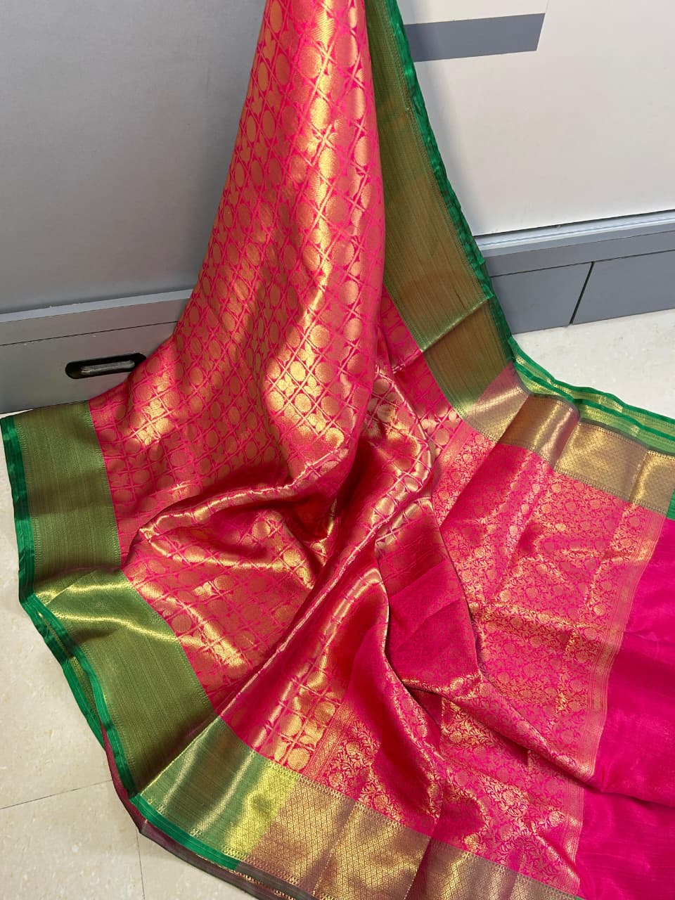 🩵 Banarasi Tissue Saree with beautiful Rani Colour Border weaving