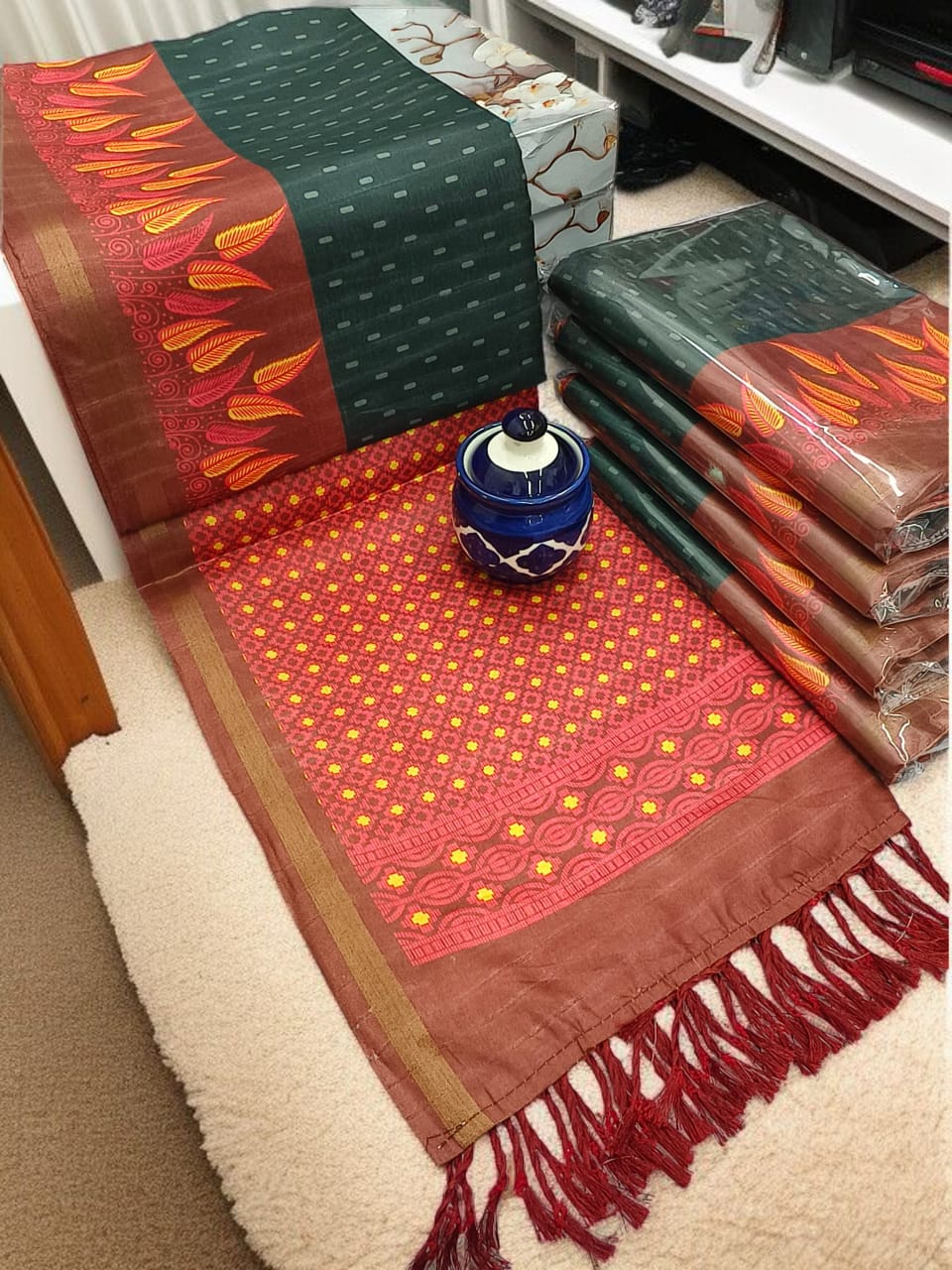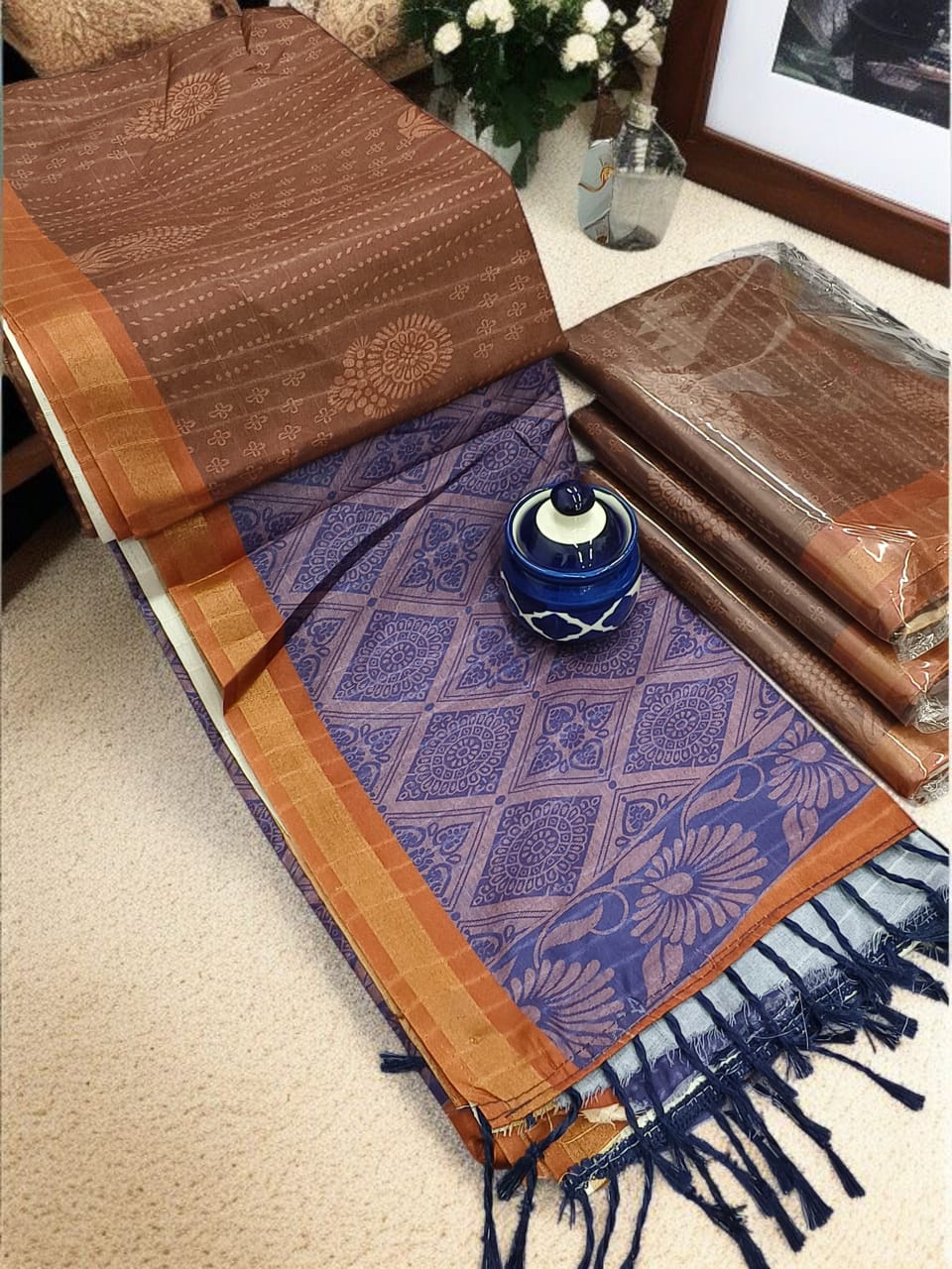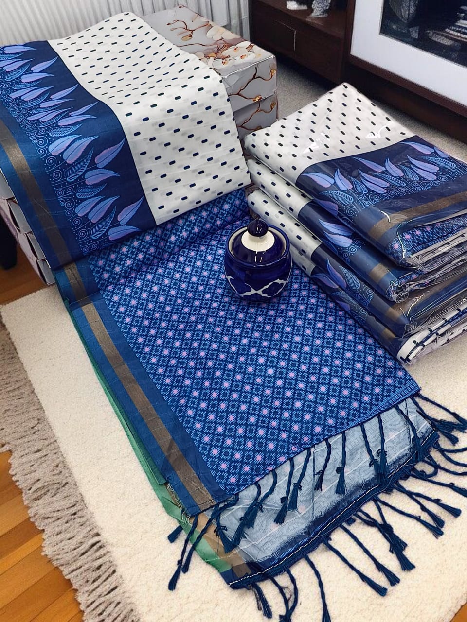 Exclusive collection of comfortable and light weight saree made of high-quality pure cotton. The saree is soft and delicate and drapes smoothly. Feel the softness of genuine cotton fabric on your skin.